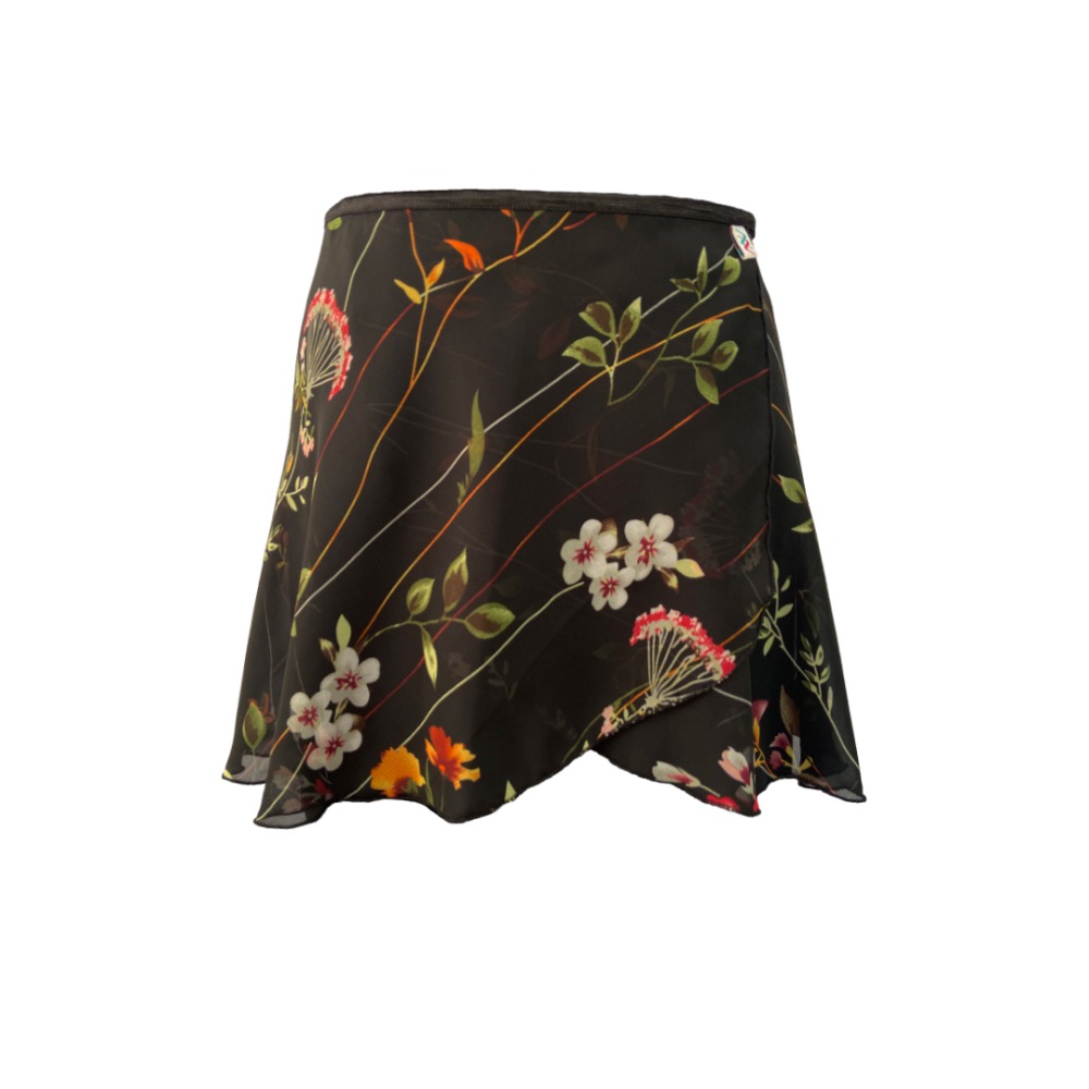 Falda Corta Envolvente | Negro con Flores | MBFD5