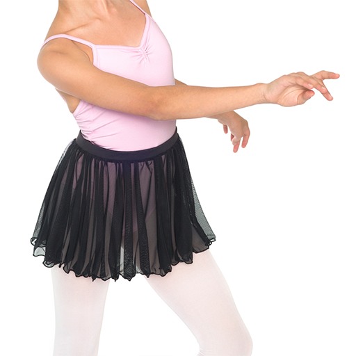 Falda circular con pretina, plisada de mesh. Modelo Infantil Color: Negro Tallas: 4/6, 6/8, 8/10, 10/12, 12/14, 14/16 Material: MESH: SPANDEX LYCRA ® 6% NYLON 94%