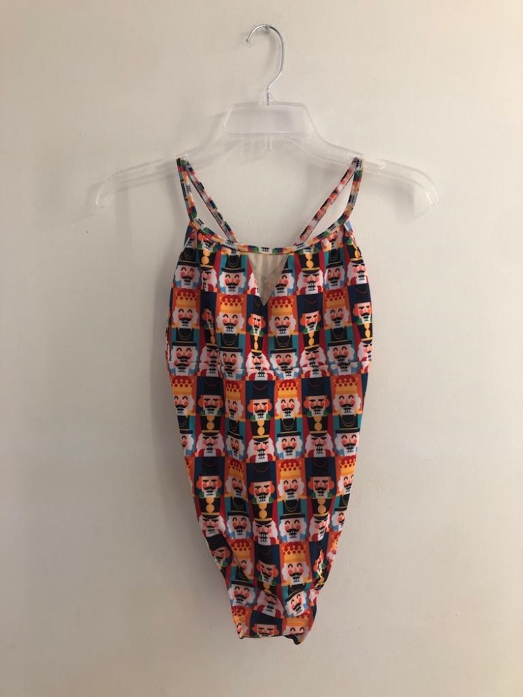 Leotardo con estampado de Cascanueces, con tirante delgado que lleva a la espalda con cruce y escote al frente en triángulo con mesh Modelo: LACS