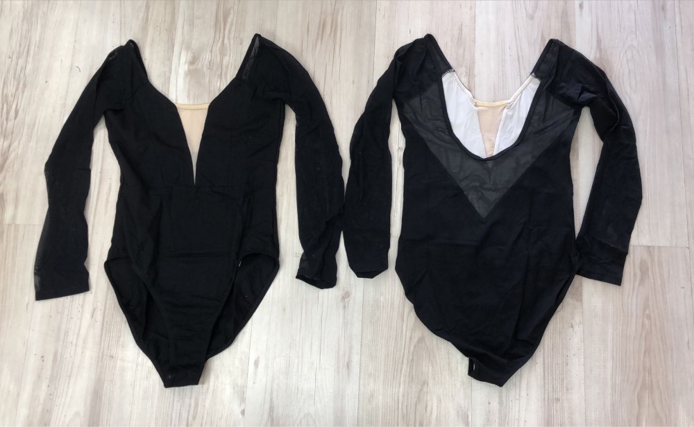 Frente con abertura en busto pronunciada tipo V cubierta con mesh color carne excelente opción para vestuario de cisne negro