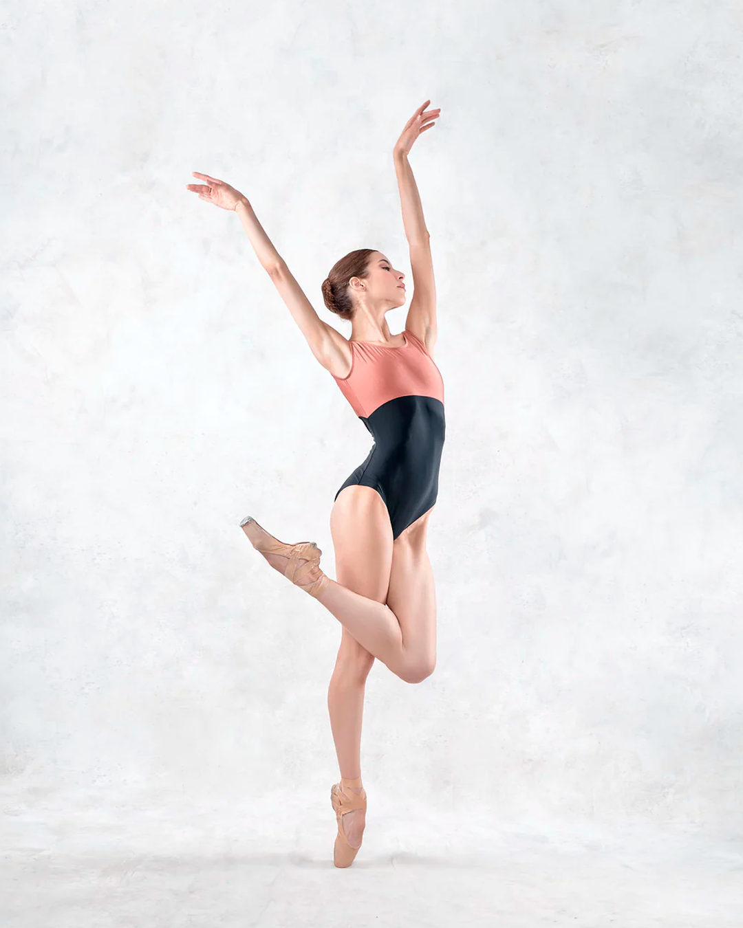 Leotardo para ballet o danza de tirante medio con forro delantero en parte superior y puente, escote bailarina y espalda abierta. El leotardo DELIA tiene en la parte superior del delantero y espalda tela elástica brillosa, lo que hace que sea un modelo que estiliza mucho la figura.