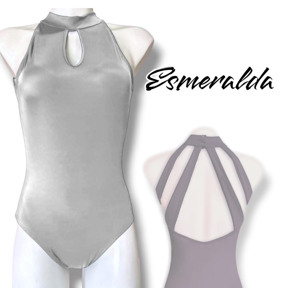 Leotardo sin mangas con cuello alto Espalda con doble cinta en corte V Frente con escote de gota Color: Gris Marca: Adria Tallas: XCH, CH, MED, GDE, XGDE Consulta tabla de tallas