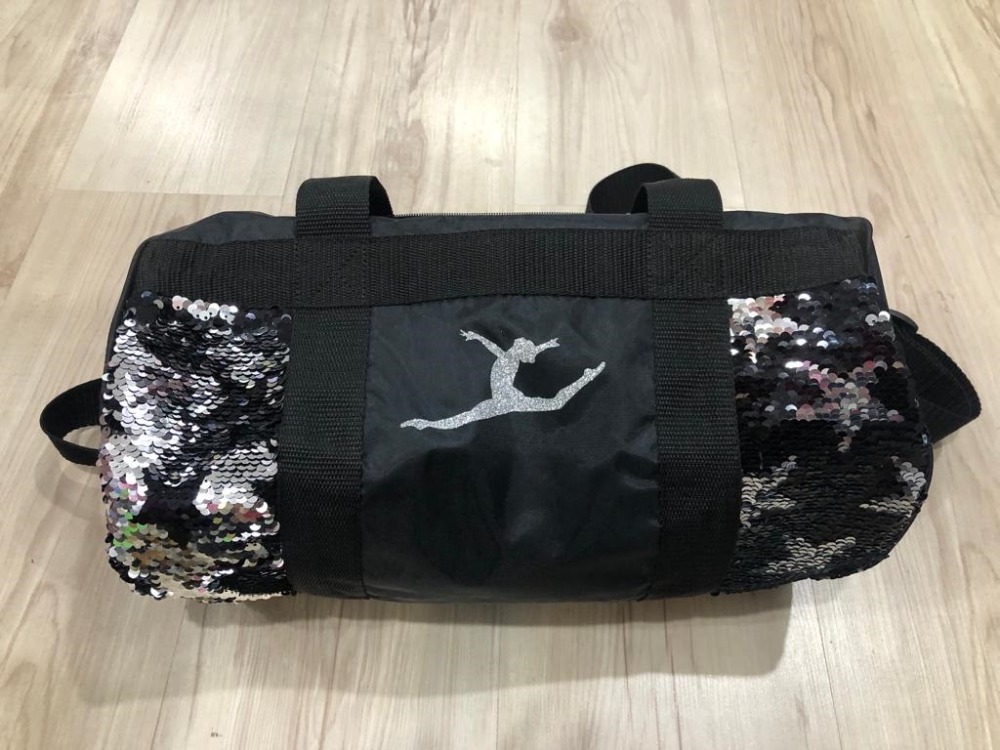 Maleta negra con lentejuela reversible de negro a plata con estrellas