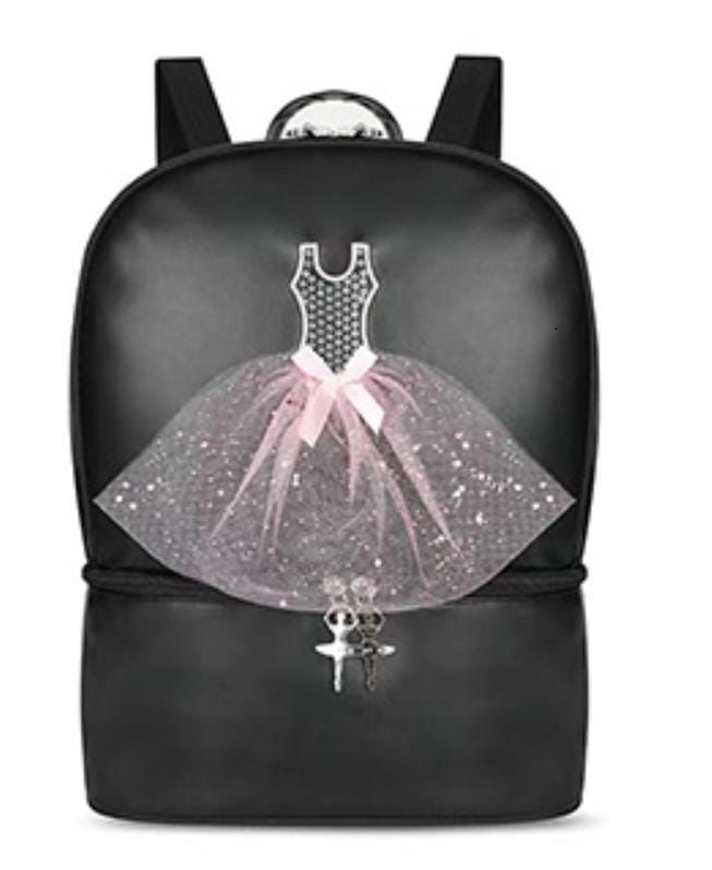 Mochila de bailarina con aplique de tul con brillos al frente para simular un tutú y moño
