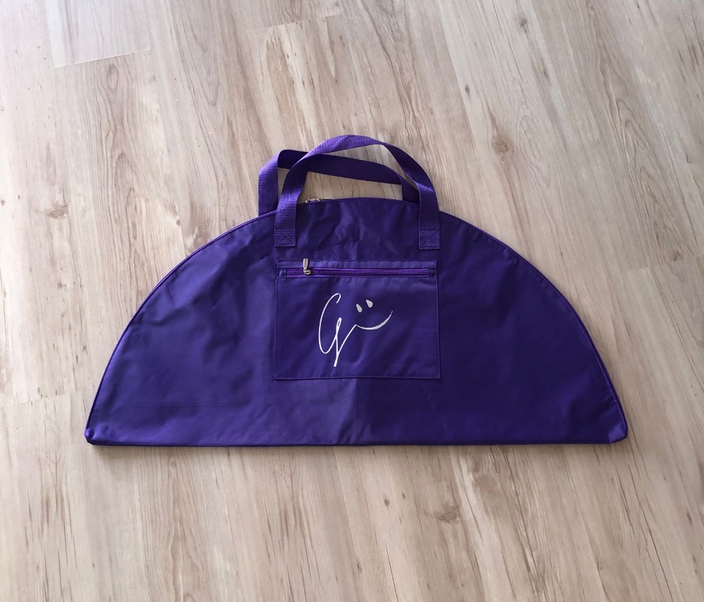 Portatutú en medio círculo, con broches y bolsas internas. Con logo de GÜ estampado Color: morado Largo: 90 cm (diámetro) Radio: 45 cm Material: Poliester