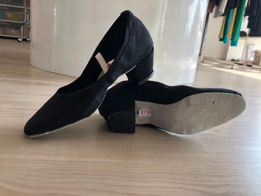 Zapato de carácter de lona negra. Tacón de 4.5 cm Manejamos tallas del 19 al 26, con medios números.
