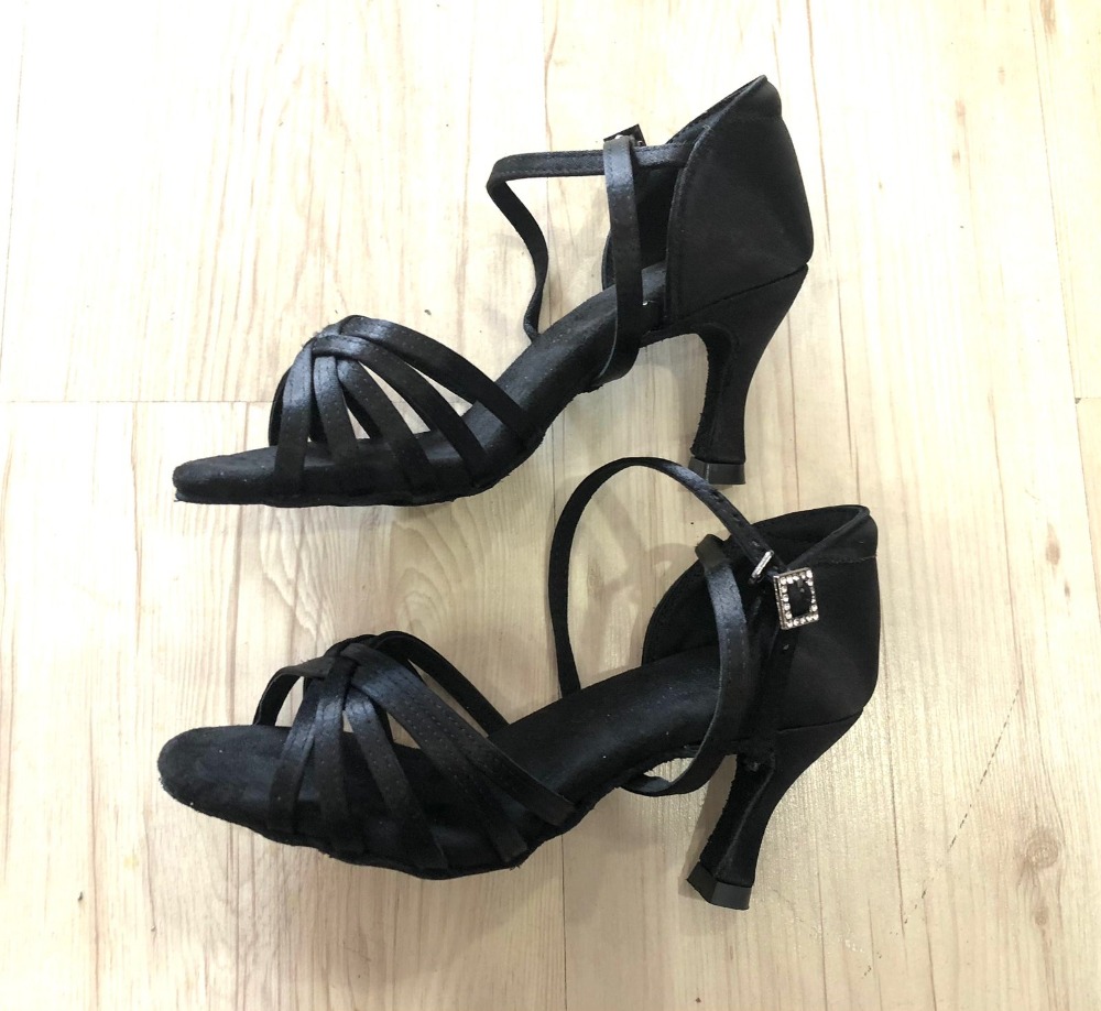 Zapato para ritmos latinos de tela satinada y suela de gamuza Zapato flexible Alto del tacón: 7.5 cm Color: Negro